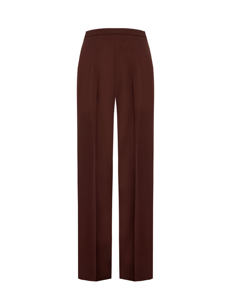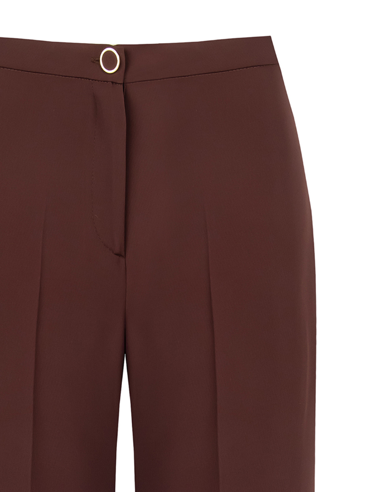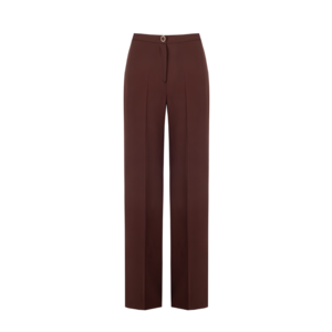 De Rinascimento Pantalon Dritto in de kleur cioccolato is een elegante broek met een rechtvallend silhouet. De hoge taille en de scherpe persvouwen zorgen voor een flatterende en tijdloze pasvorm. Afgewerkt met een subtiele haak- en knoopsluiting met een elegante ringdetail, combineert deze pantalon verfijning met comfort.