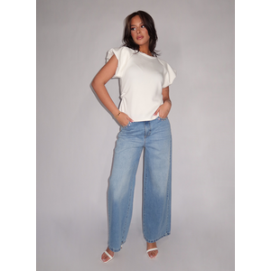 Draag deze wijde jeans met een strakke top of een blouse die je half instopt voor een gebalanceerde look. Rinascimento combineert hier een relaxed pasvorm met verfijnde details. Mooi te stylen met een blazer en pumps of met sneakers voor een casual effect.