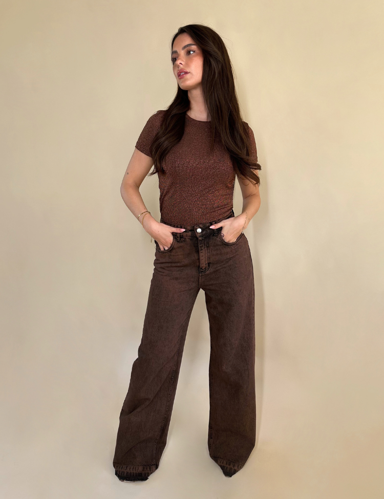De korte mouwen en ronde hals zorgen voor een tijdloze, draagbare look, terwijl de licht glinsterende afwerking net dat beetje extra geeft. Combineer ‘m met een pantalon of een rok voor een sophisticated ensemble, of ga voor casual chic met een jeans en hakken. Een veelzijdige essential die elke outfit naar een hoger niveau tilt.