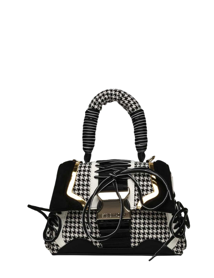 De Steve Madden Bdiego-H Bag is een opvallend statement piece dat luxe en speelsheid combineert. Het unieke design met een klassieke pied-de-poule print en moderne details zoals gouden accenten en een sportieve vetersluiting, maakt deze tas een absolute blikvanger. Het stevige handvat met stijlvolle afwerking geeft de tas een chique uitstraling, terwijl de verstelbare schouderriem zorgt voor veelzijdig draaggemak.