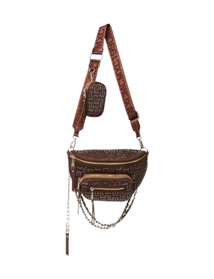 De tas bestaat uit meerdere compartimenten om je essentials overzichtelijk op te bergen. Het glanzende front pouch zorgt voor een dosis glamour, terwijl het afneembare mini-tasje een praktische én stijlvolle toevoeging is. Draag hem als crossbody tijdens een festival of city trip, of gebruik de tas als eyecatcher bij een avondlook.