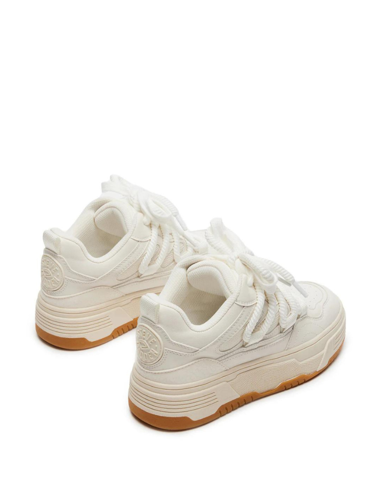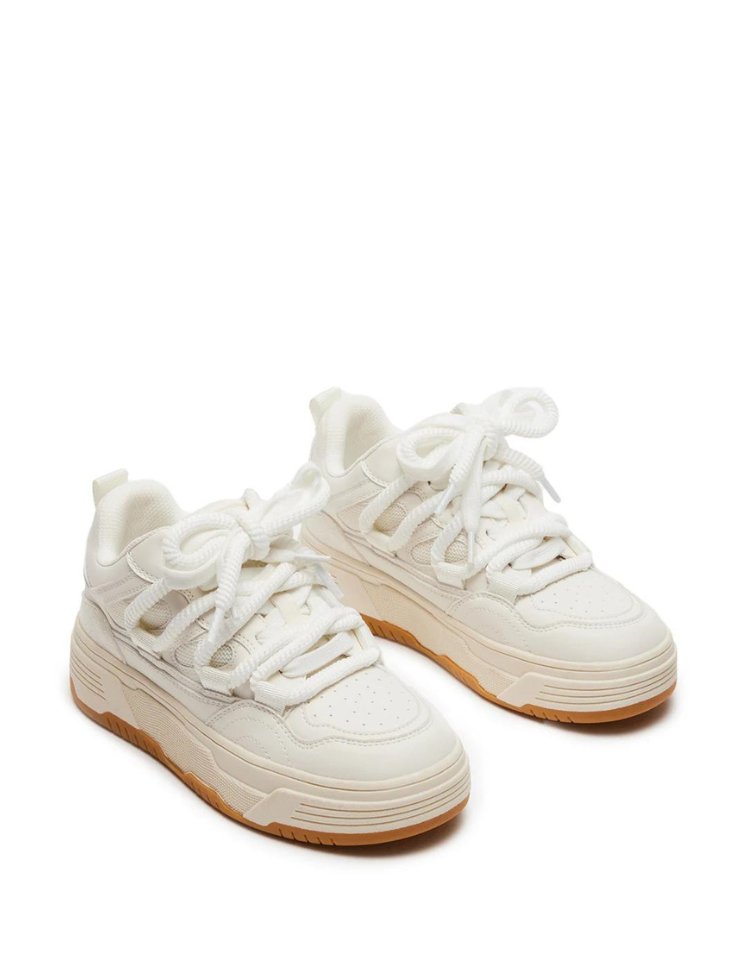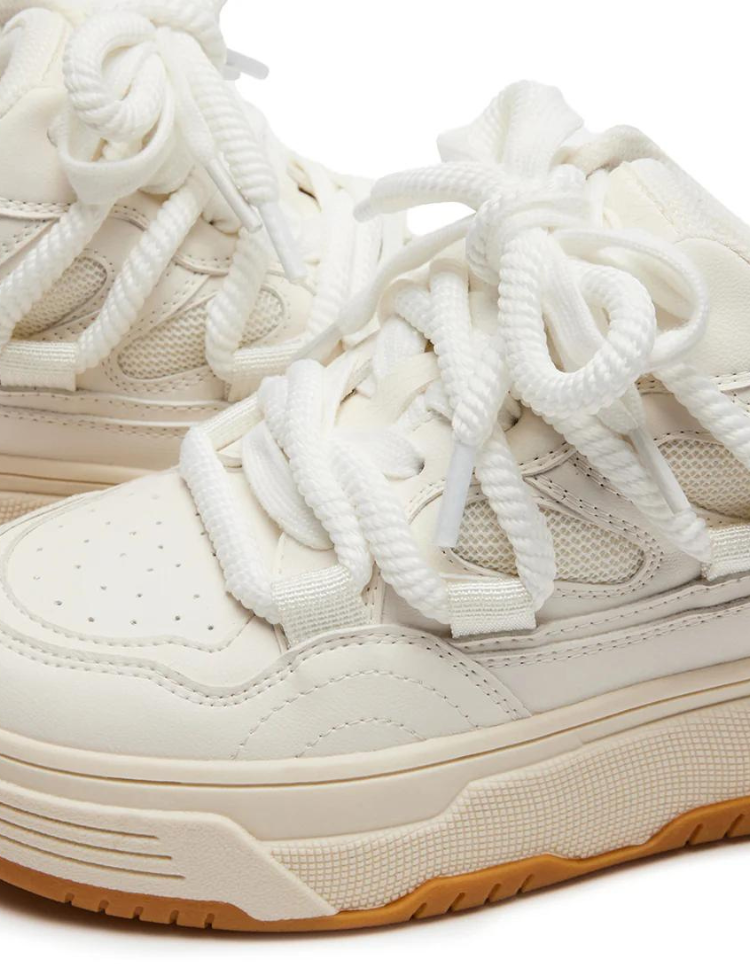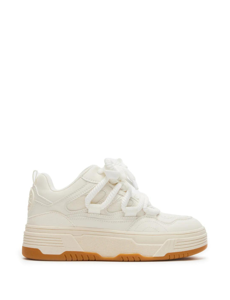 De Steve Madden Boomer Sneaker met stevige plateauzool en dubbele vetersluiting. Verkrijgbaar in meerdere kleuren.