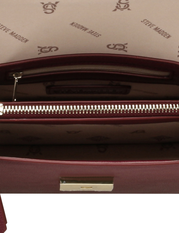 De Steve Madden Bstakes-2 Bag is de perfecte mix van modern design en luxueuze details. Het strakke silhouet wordt direct herkenbaar gemaakt door het oversized metalen logo op de flap-over, dat de tas een krachtige en trendy uitstraling geeft. De dubbele goudkleurige kettingband straalt elegantie uit en maakt het mogelijk om de tas zowel crossbody als stijlvol over de schouder te dragen.