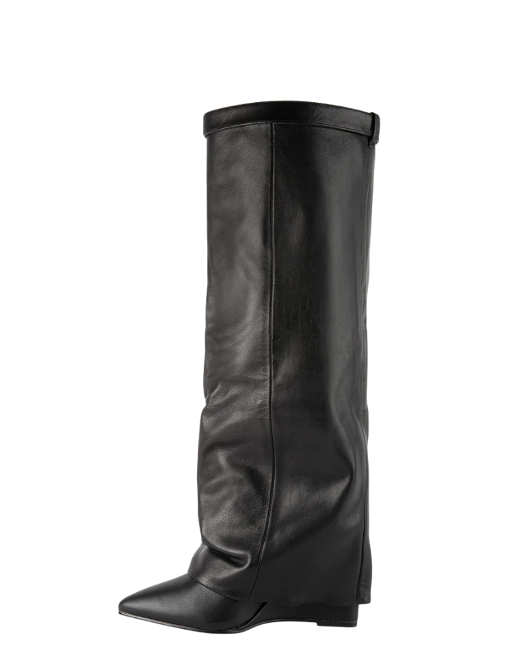 De Steve Madden Corenne Boot is dé laars die moderne luxe en tijdloze klasse samenbrengt. Met een kniehoge schacht en een subtiel slouchy effect creëert deze boot een elegante, nonchalante uitstraling. De puntige neus en het platte design zorgen voor een sophisticated silhouet dat zowel chic als comfortabel oogt. Het hoogwaardige materiaal voelt stevig en zacht aan, terwijl de verstelbare gesp aan de bovenkant zorgt voor een verfijnde finishing touch.
