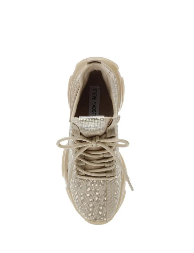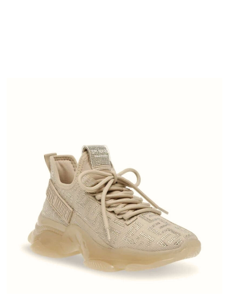 De Steve Madden Maxout Sneaker met rhinestone design, stevige zool, vetersluiting en comfortable pasvorm. Verkrijgbaar in meerdere kleuren.