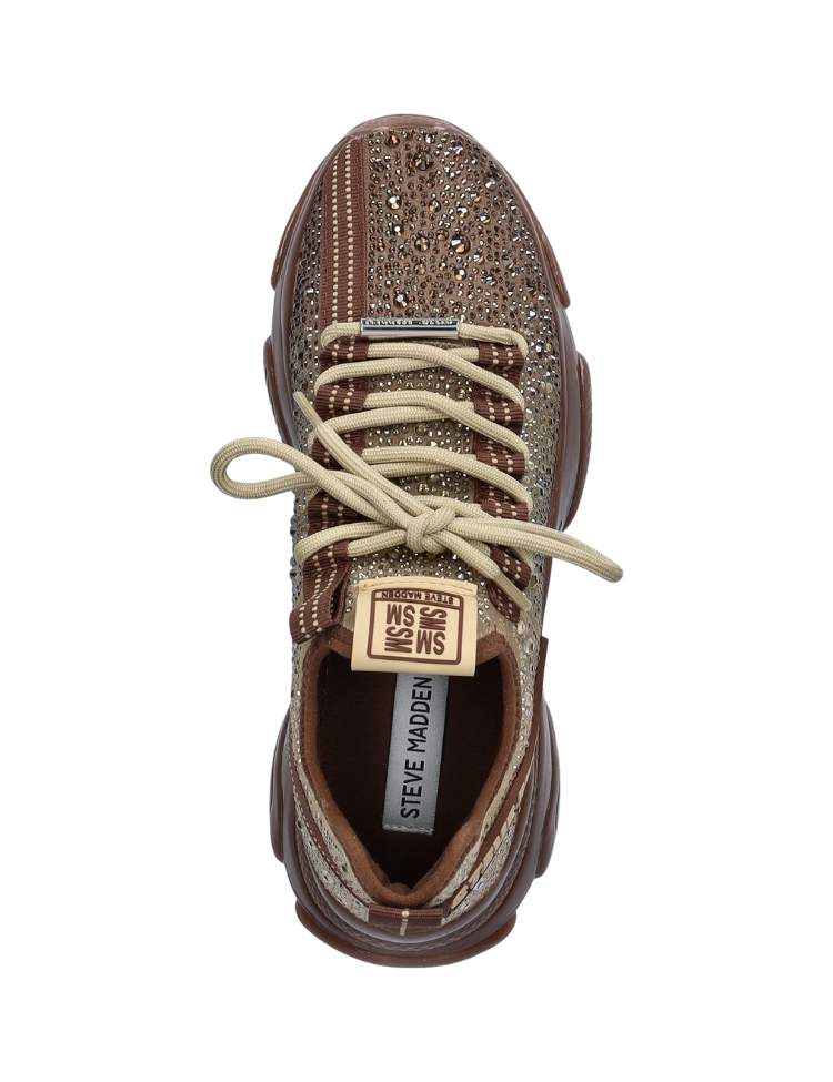 De Steve Madden Mistica Sneaker is een echte eyecatcher die jouw outfit naar een hoger niveau tilt. Het bovenwerk van textiel is rijkelijk afgewerkt met strass steentjes, wat zorgt voor een sprankelende en luxe uitstraling. Perfect voor de modebewuste vrouw die comfort en stijl wil combineren.
