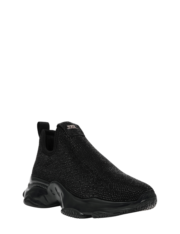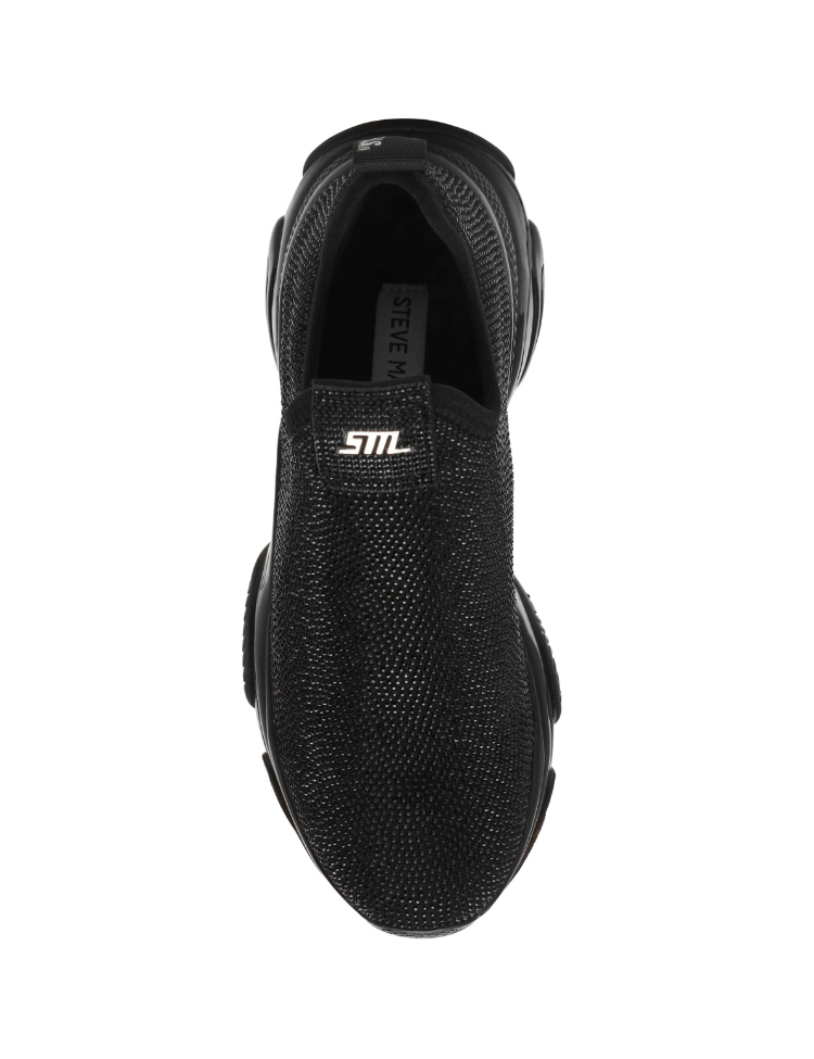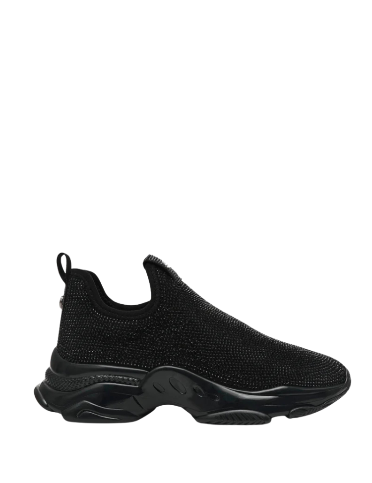 De Steve Madden Mythical Sneaker is de ultieme combinatie van luxe en sportieve flair. Deze zwarte slip-on sneaker is volledig uitgevoerd in een glinsterende fabric upper die jouw outfit direct naar een hoger niveau tilt. Het comfortabele ontwerp zonder veters maakt instappen eenvoudig, terwijl de chunky zool met een platformhoogte van 5 cm zorgt voor extra lengte en een moderne uitstraling.