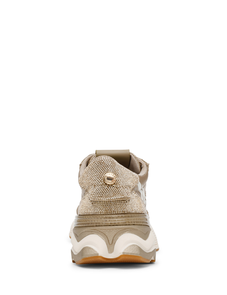 De Steve Madden Setback-R sneaker combineert luxe uitstraling met ultiem comfort. Deze opvallende sneaker heeft een chunky zool en een glanzend gouden upper met verfijnde details. Het moderne design en de subtiele glitters geven de schoen een glamoureuze twist, terwijl de stevige zool zorgt voor stabiliteit en draagcomfort. Perfect om je outfit een edgy en stijlvolle upgrade te geven, of je nu casual of sportief gekleed gaat.