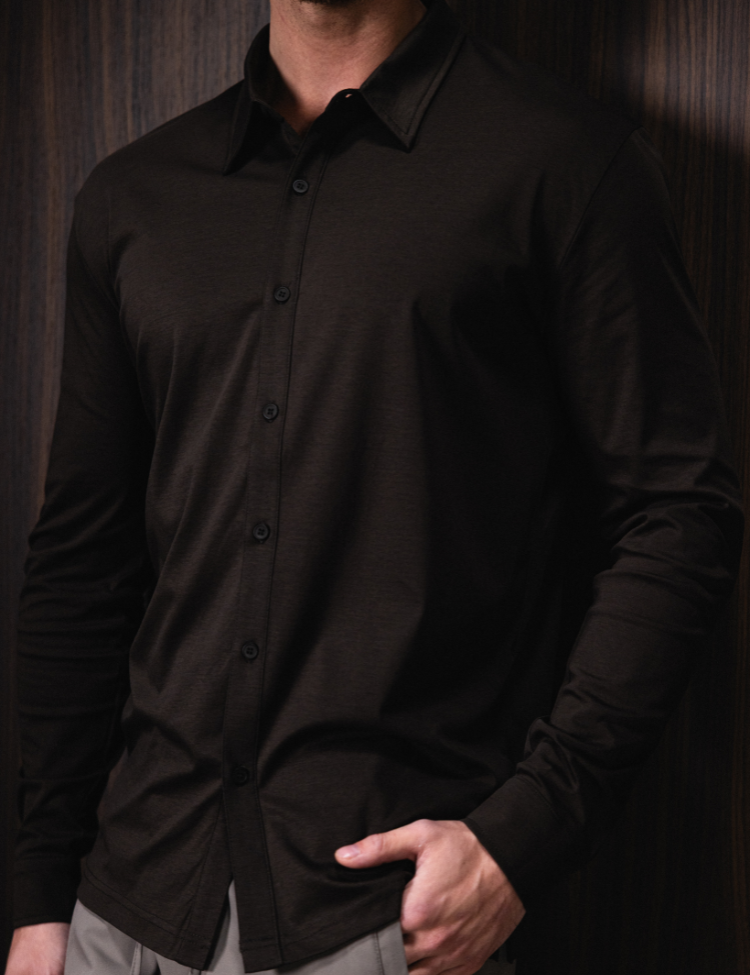 TriaD'oro Buttoned Longsleeve Polo - Black