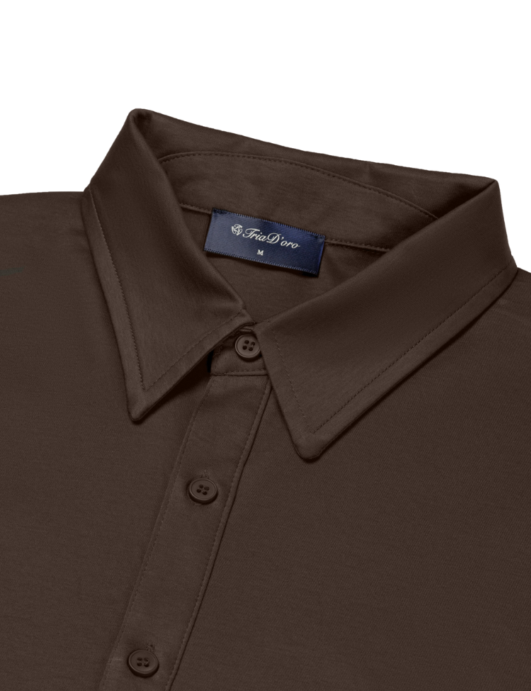 TriaD'oro Buttoned Longsleeve Polo - Brown