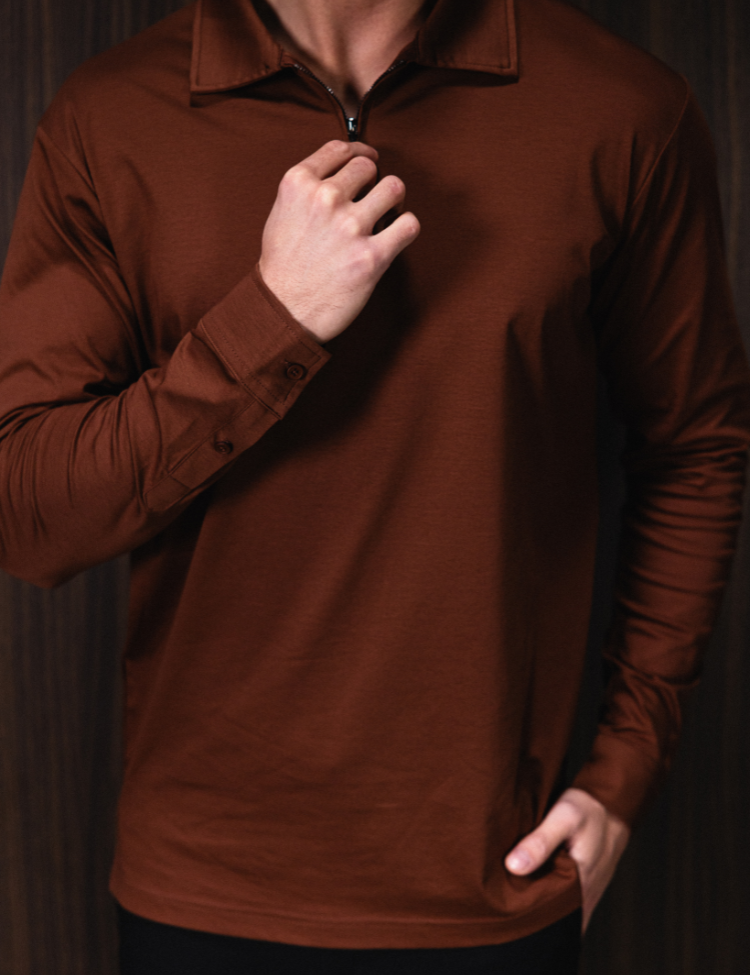 TriaD'oro Polo Zip Long Sleeve - Copper