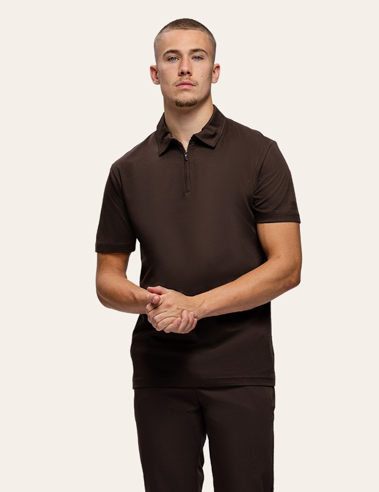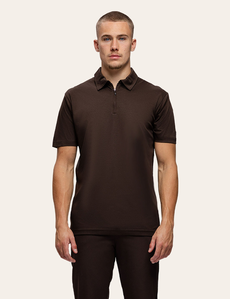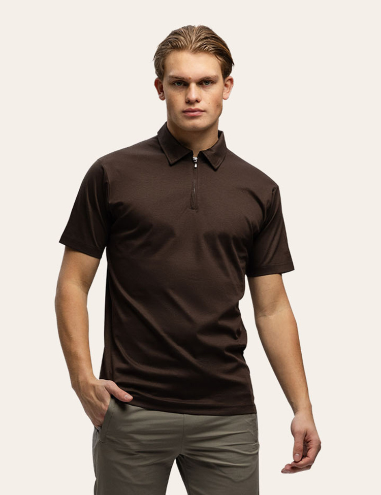 TriaD'oro Polo Zip Short Sleeve - Brown