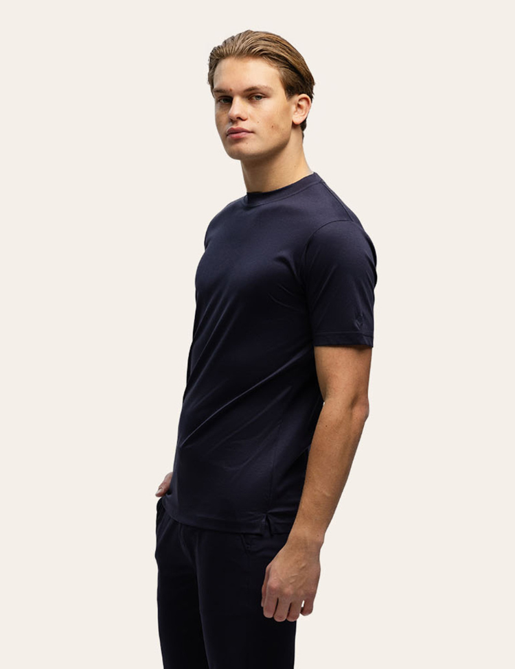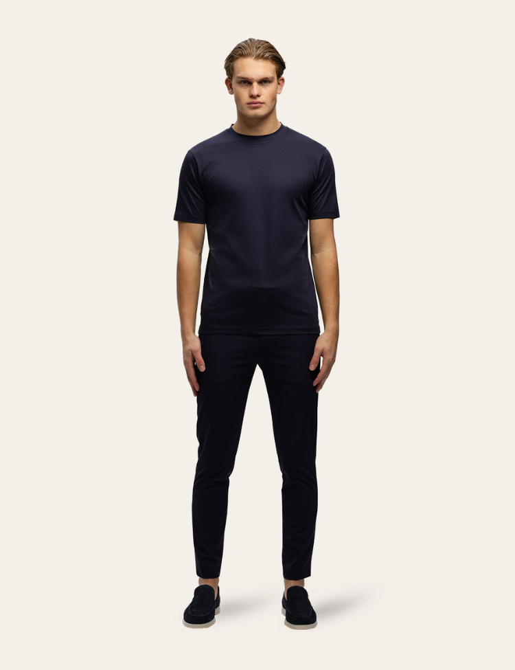 Het Slim Fit T-Shirt van TRIAD’ORO combineert casual chique met een verfijnde stijl. Dit T-shirt heeft een slim fit pasvorm, die het lichaam op een elegante manier volgt, en biedt tegelijkertijd optimaal comfort. Gemaakt van Supima cotton, een van de beste katoensoorten ter wereld, voelt het T-shirt zacht aan en heeft het een luxe uitstraling die je dag in en dag uit kunt dragen. Dankzij het tijdloze ontwerp is dit T-shirt perfect voor iedere gelegenheid, of je nu een casual look wilt creëren of een meer verfijnde, elegante uitstraling zoekt. Triad'oro biedt een must-have basisstuk voor je garderobe, dat zowel veelzijdig als van hoge kwaliteit is.