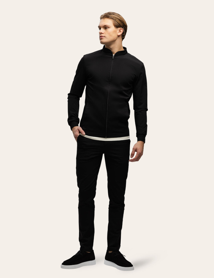 Dit casual chique trainingspak, gemaakt van premium stretchmateriaal, biedt de ideale balans tussen stijl en comfort. Dankzij de slim fit pasvorm krijgt je lichaam een strak silhouet, terwijl het materiaal zorgt voor zowel flexibiliteit als langdurige kwaliteit. Het pak is vervaardigd met oog voor elk detail, en straalt luxe uit door de verfijnde stof. Of je het nu casual combineert met sneakers of het elegant maakt met nette schoenen, dit trainingspak zal gegarandeerd de aandacht trekken en je een stijlvolle uitstraling geven. Een perfecte mix van comfort en mode, geschikt voor elke gelegenheid.