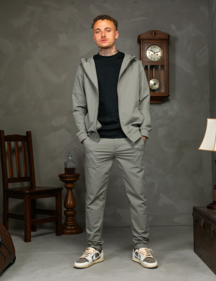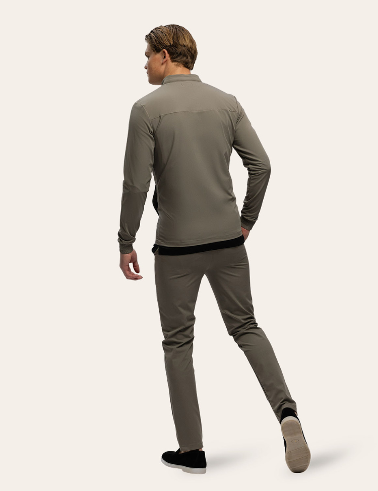 Dit casual chique trainingspak, gemaakt van premium stretchmateriaal, biedt de ideale balans tussen stijl en comfort. Dankzij de slim fit pasvorm krijgt je lichaam een strak silhouet, terwijl het materiaal zorgt voor zowel flexibiliteit als langdurige kwaliteit. Het pak is vervaardigd met oog voor elk detail, en straalt luxe uit door de verfijnde stof. Of je het nu casual combineert met sneakers of het elegant maakt met nette schoenen, dit trainingspak zal gegarandeerd de aandacht trekken en je een stijlvolle uitstraling geven. Een perfecte mix van comfort en mode, geschikt voor elke gelegenheid.