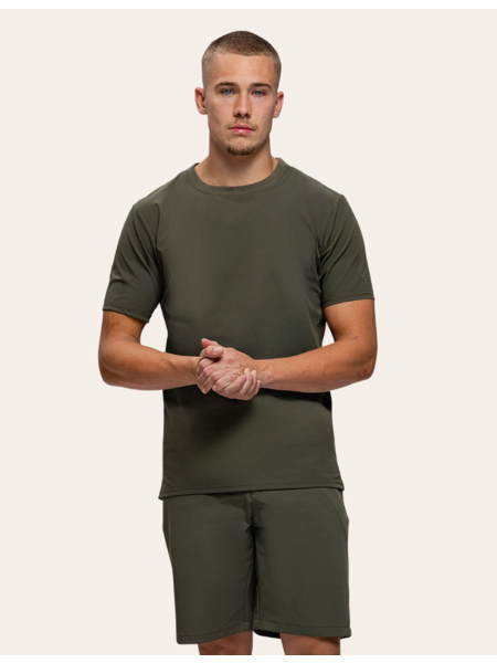 De diepe olijfgroene kleur geeft dit minimalistische T-shirt een stoere en verfijnde uitstraling. De pasvorm is relaxed maar gestroomlijnd, afgewerkt met een ronde hals en subtiel logo op de mouw. Of je nu op reis gaat, een casual meeting hebt of je weekend in stijl wilt starten: dit shirt levert elke keer.