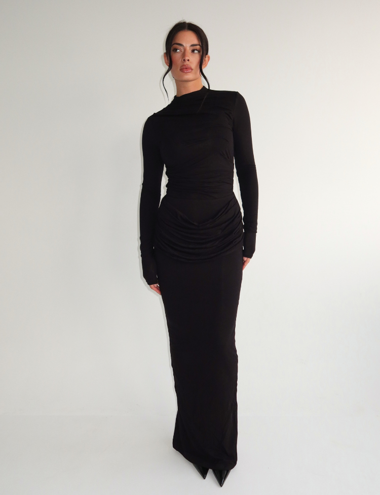 Unique The Label Eliza Drape Long Skirt - Black