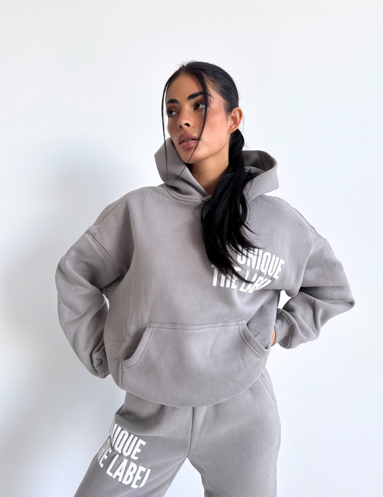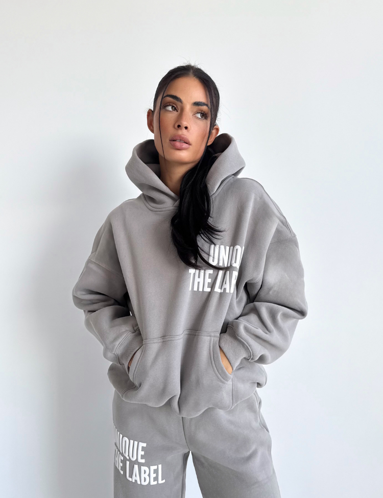 Cozy meets classy met de Elyana Hoodie van Unique The Label. Deze hoodie is een echte eyecatcher dankzij het oversized model, de zachte stof én de bold white logo-print op de borst. De kangoeroezak aan de voorkant en de comfortabele capuchon zorgen voor de perfecte balans tussen streetstyle en luxe loungewear. Combineer met de bijpassende jogger voor een complete co-ord set, of draag ‘m op een jeans of leren broek voor een edgy city look. Verkrijgbaar in meerdere kleuren.
