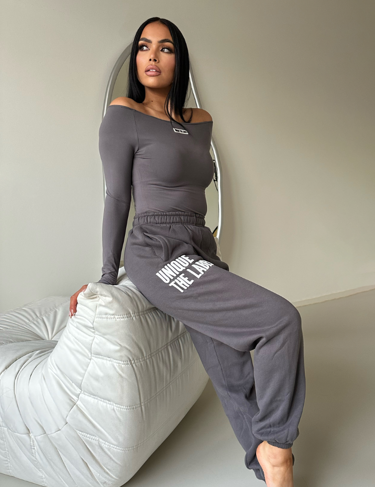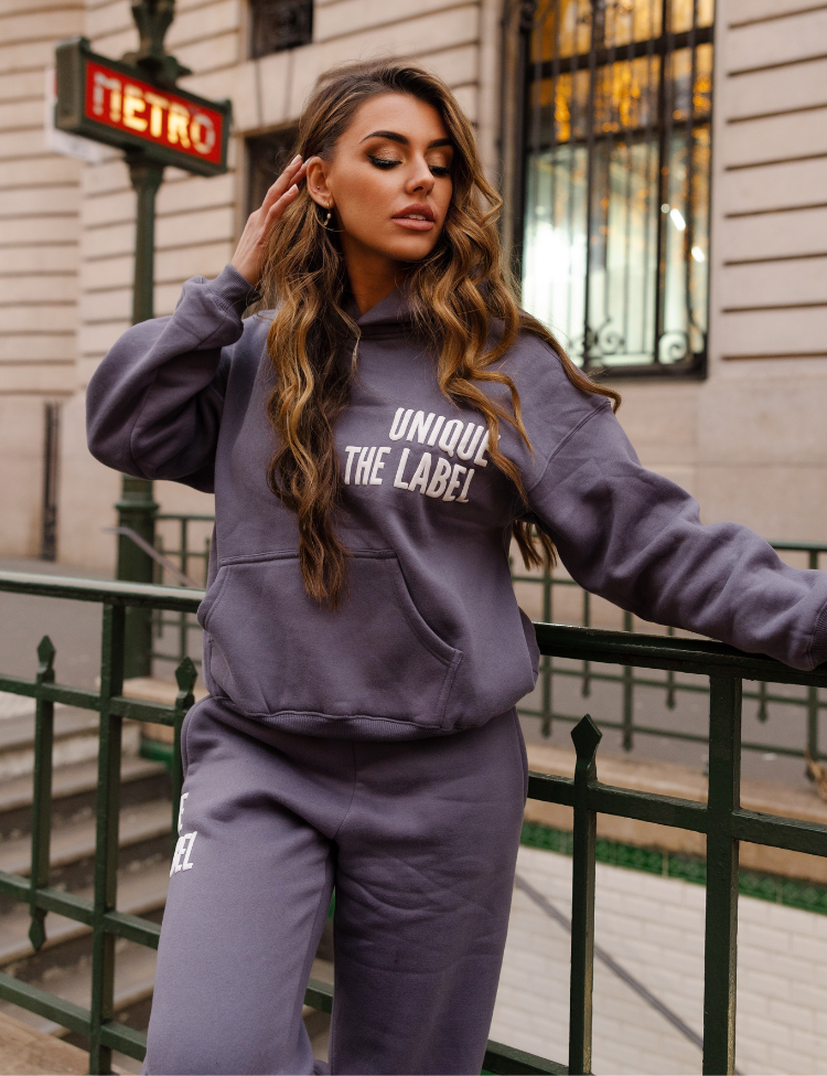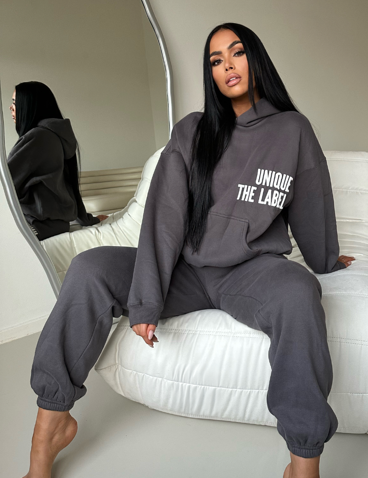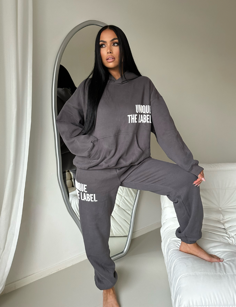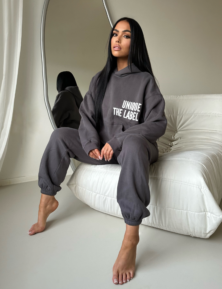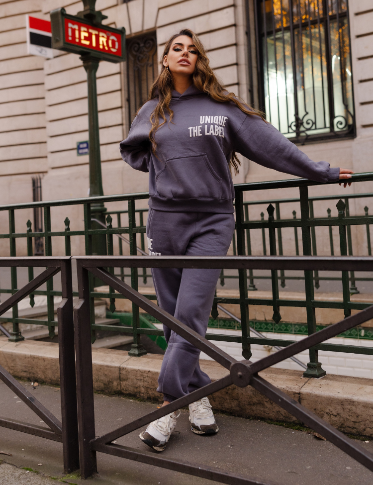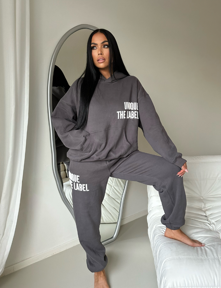 Combineer deze broek met de bijpassende hoodie van Unique The Label voor een complete loungewear look. De sneakers maken het geheel sportief en eigentijds.