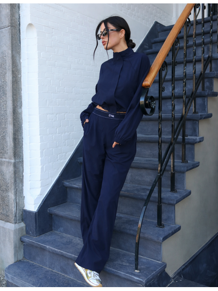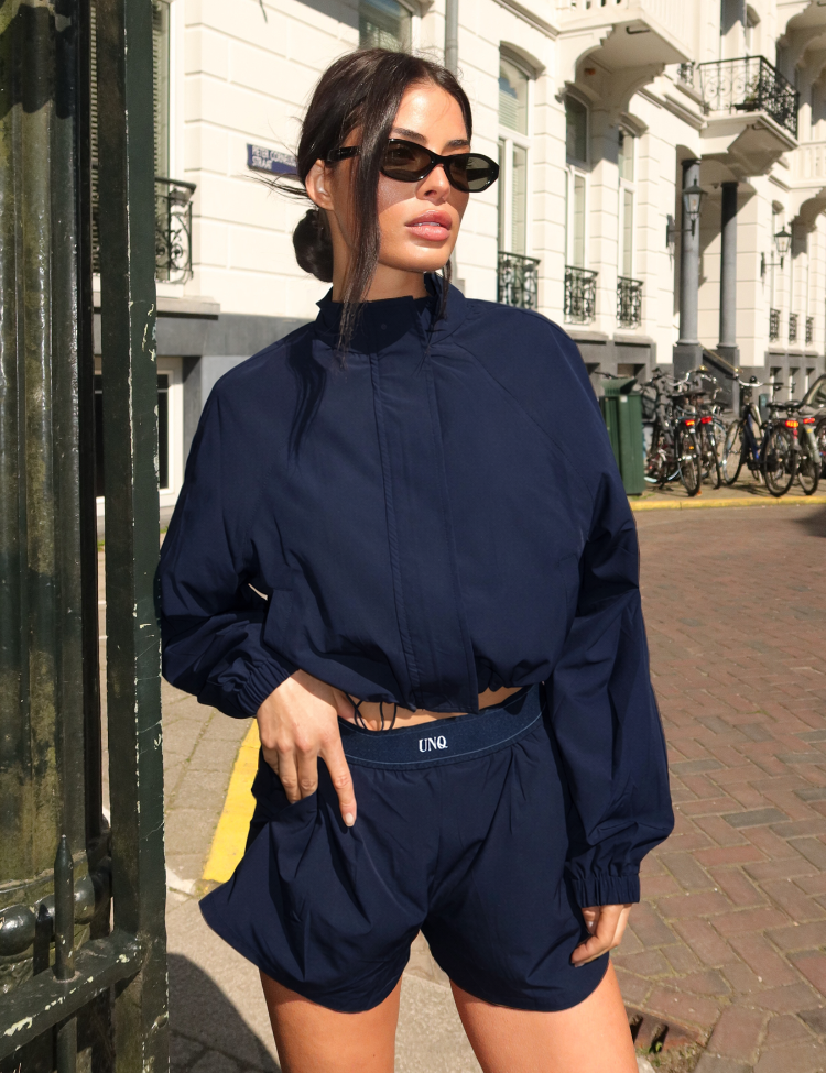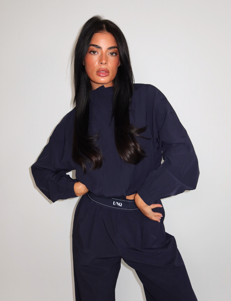 Unique The Label combineert comfort met stijl in dit navy jacket. Draag de Gigi Jacket over een strakke top voor contrast in volumes. Combineer met de bijpassende broek voor een complete set-look of style het jacket met jeans en sneakers voor een casual twist.
