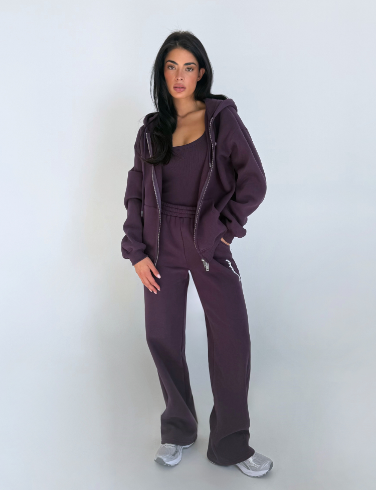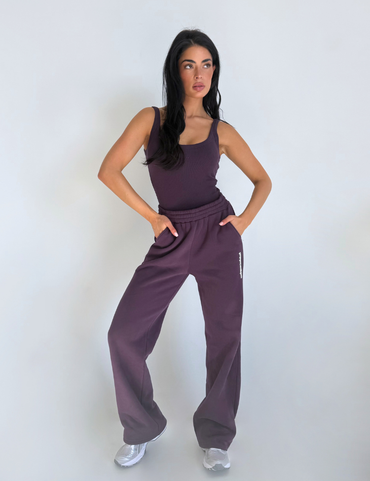 Combineer deze deep berry jogger met het bijpassende tanktop voor een complete loungewear set. Voor een trendy streetwear look draag je de broek met de oversized hoodie uit dezelfde collectie van Unique The Label. De metallic sneakers maken je outfit helemaal af.
