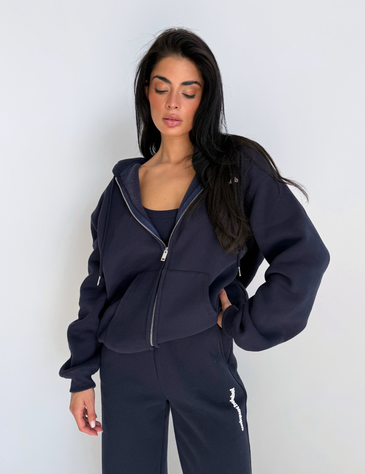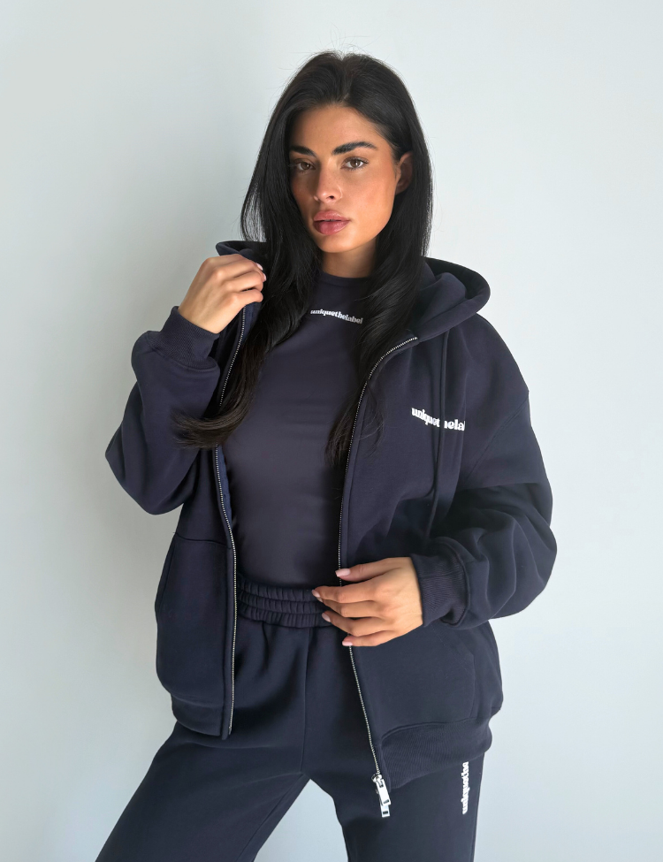 Combineer dit vest met de bijpassende donkerblauwe broek voor een complete loungewear look. Het top eronder creëert extra laagjes en dimensie. De oversized pasvorm van Unique The Label staat prachtig bij elke lichaamstype.