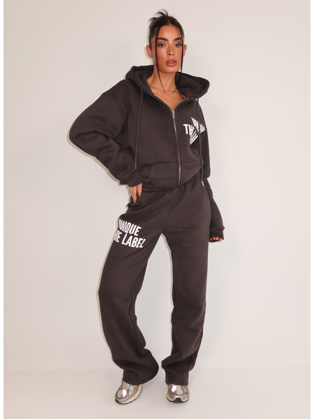 Combineer deze jogger met de bijpassende hoodie voor een complete loungewear set van Unique The Label. De oversized hoodie met ritsluiting en capuchon zorgt voor een stijlvolle coördinatie. Style de set met chunky sneakers voor een trendy streetwear look.