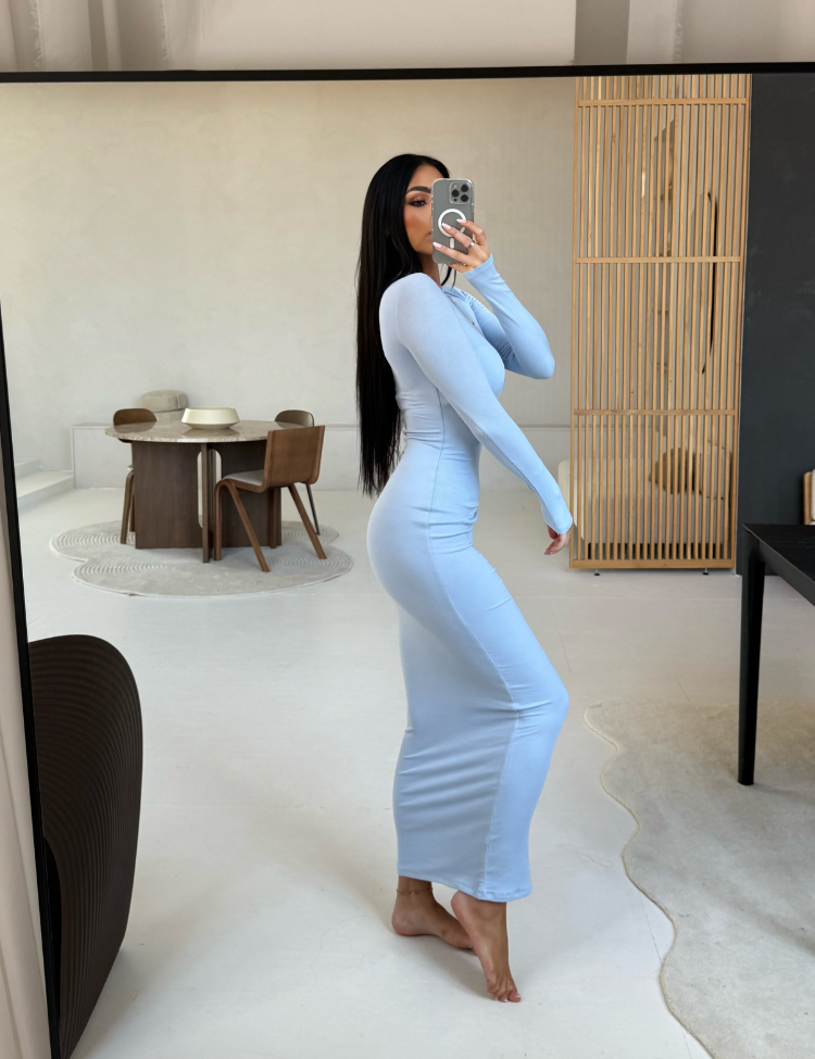 Unique The Label Joya Rib Dress - Sky Blue