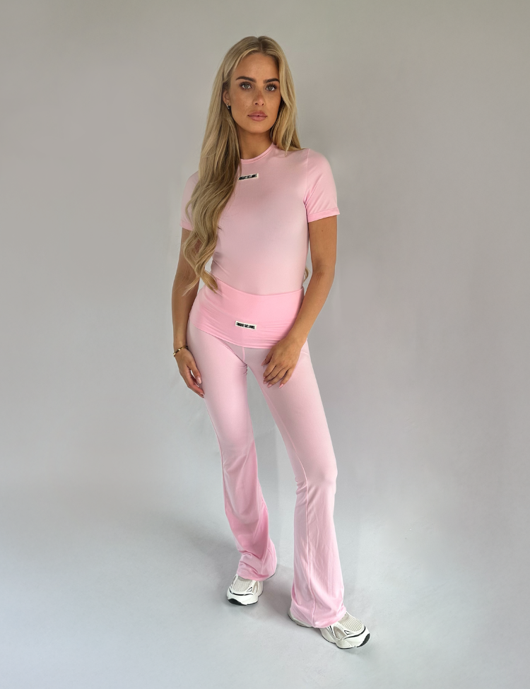 Draag de Nena Short Sleeve met de bijpassende Nena Pants in Powder Pink voor een harmonieuze co-ord set.