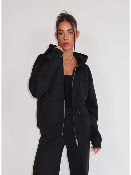 Dit zwarte vest van Unique The Label combineert comfort met een verfijnde uitstraling. Het oversized model heeft een capuchon met trekkoorden en een doorlopende rits aan de voorzijde. Op de achterzijde staat 'UNIQUE THE LABEL' in reliëfletters verwerkt. De ribgebreide boorden bij de mouwen en zoom zorgen voor een goede pasvorm. Deze hoodie is uitgevoerd in een zachte sweatstof en valt ruim door de relaxte snit.