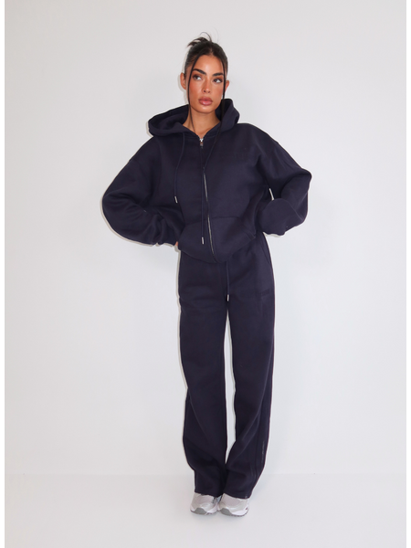Combineer dit navy vest met de bijpassende joggingbroek voor een complete loungewear set van Unique The Label. De oversized fit zorgt voor een relaxte uitstraling die perfect aansluit bij de hedendaagse athleisure trend.