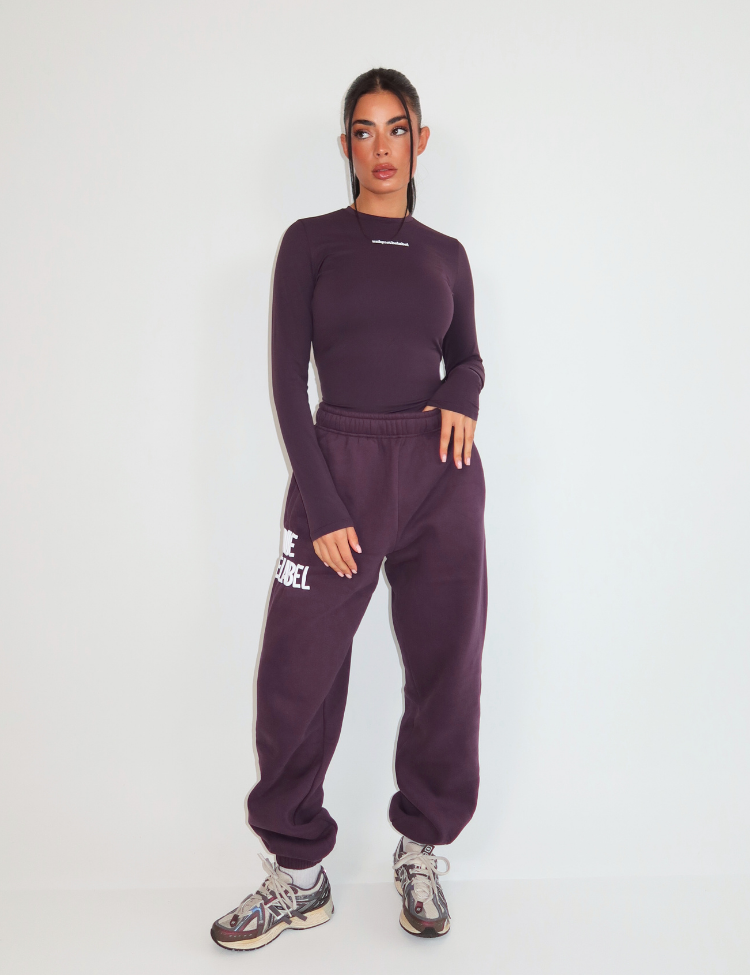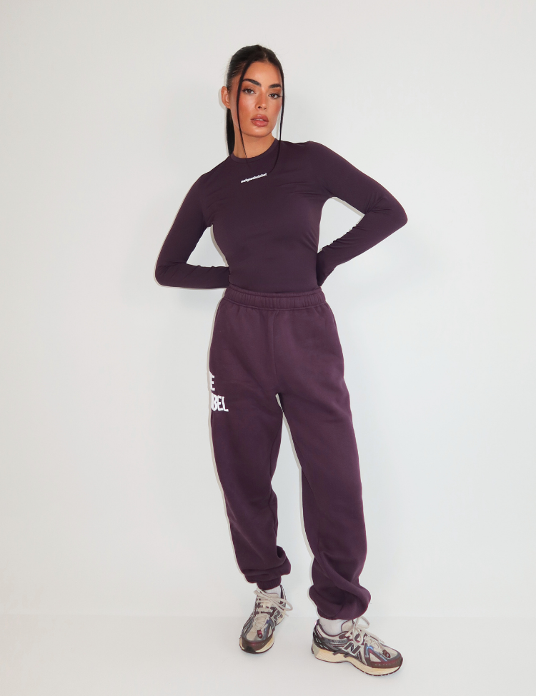 De Robyn longsleeve van Unique The Label draag je zoals op de foto met de bijpassende joggingbroek voor een complete loungewear look. De deep berry kleur past perfect bij neutrale tinten en metallic sneakers voor een trendy streetwear outfit.