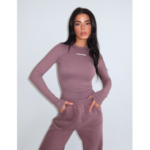 Deze longsleeve in de kleur mushroom heeft een strakke, aansluitende pasvorm die je silhouet accentueert. Het zachte, rekbare materiaal van dit shirt met lange mouwen zorgt voor bewegingsvrijheid en draagcomfort. De ronde halslijn geeft een klassieke uitstraling, terwijl de subtiele tekstprint op de borst een verfijnd detail toevoegt. Dit exemplaar van Unique The Label combineert een minimalistische vormgeving met premium afwerking voor een luxe loungewear look.