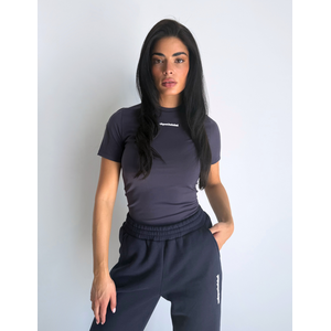 Dit kortmouwige shirt van Unique The Label in de kleur donker blauw heeft een aansluitende pasvorm en ronde halslijn. Het zachte materiaal voelt comfortabel aan en de subtiele tekstopdruk op de borst geeft het design een eigentijdse uitstraling. De korte mouwen en het elastische materiaal zorgen voor bewegingsvrijheid, terwijl de neutrale taupe-roze tint veelzijdig te combineren is. Dit basic shirt vormt een luxe basis voor je garderobe.