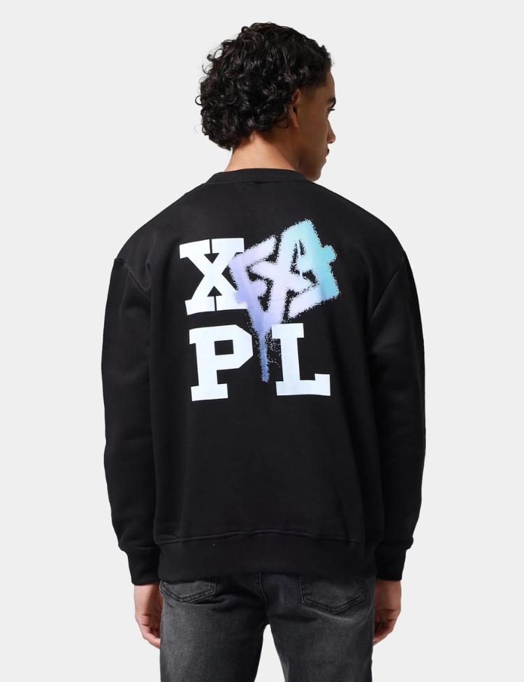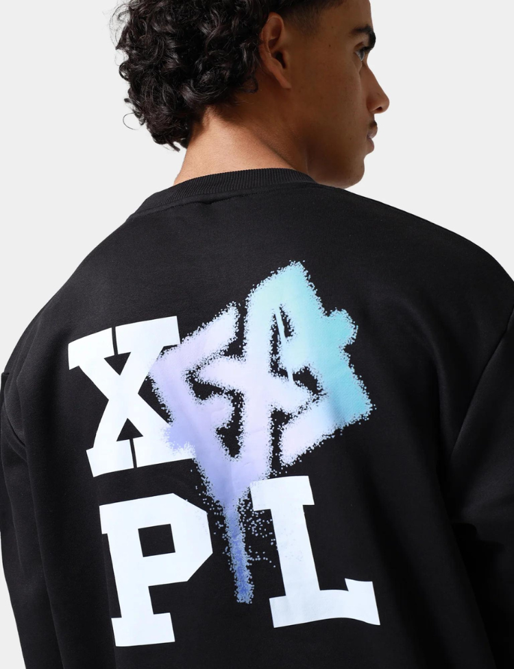 De XPLCT Overspray Sweater heeft een ronde hals en lange mouwen. De sweater heeft een groot XPLCT design op de achterkant, en een klein design op de voorkant.