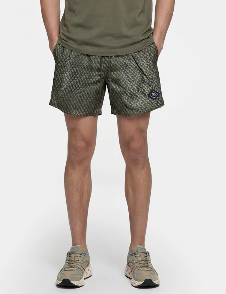 Deze army groene zwembroek van XPLCT Studios heeft een allover monogram print die direct opvalt. De korte broek beschikt over steekzakken aan de voorzijde met ritssluiting en een rubberen logopatch op het linkerbeen. De elastische taille met trekkoord zorgt voor een comfortabele pasvorm. Ideaal als zwemshort of als casual korte broek op warme dagen.