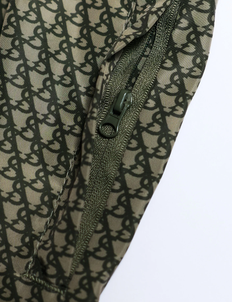 Kleur: Army groen Zakken: Steekzakken met ritssluiting Sluiting: Elastische taille met trekkoord Design: Allover monogram print met rubberen logopatch Lengte: Kort Artikelnummer: XPL-2603-09