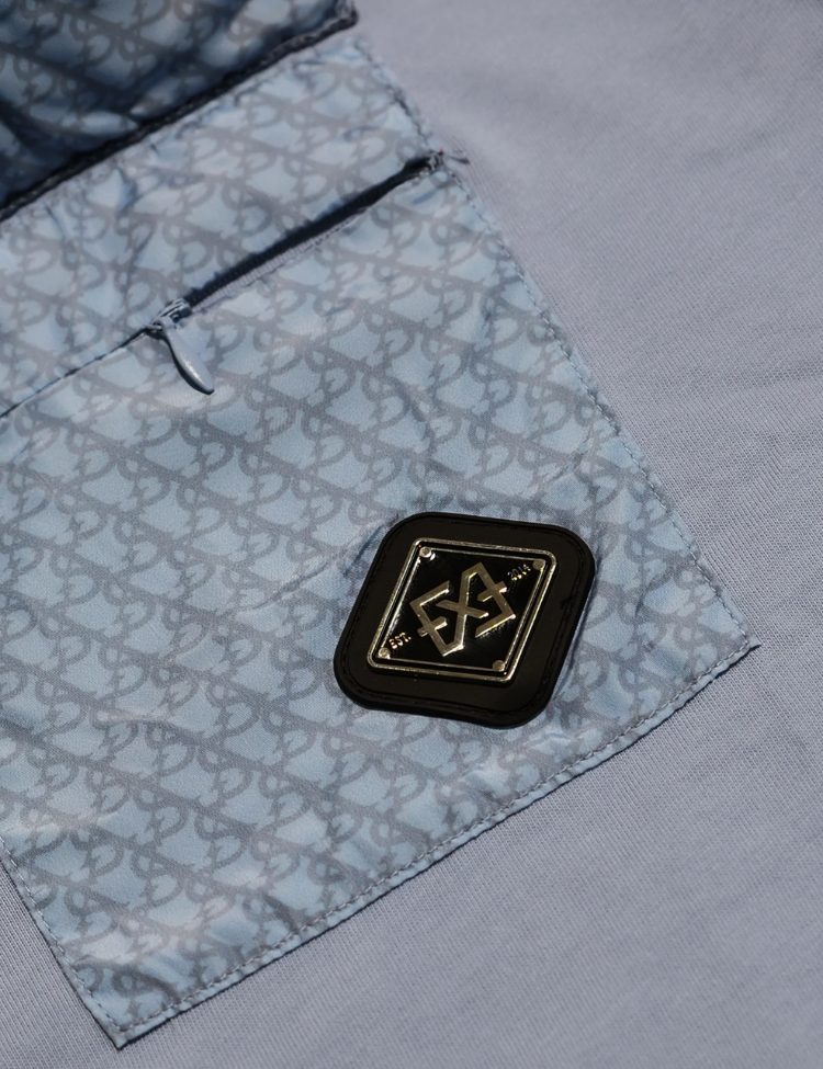 Kleur: Lichtblauw Zakken: Opgestikte borstzak met monogram print en logo badge Design: Rubber merklogo op borstzak, monogram detaillering Artikelnummer: XPL-2603-08